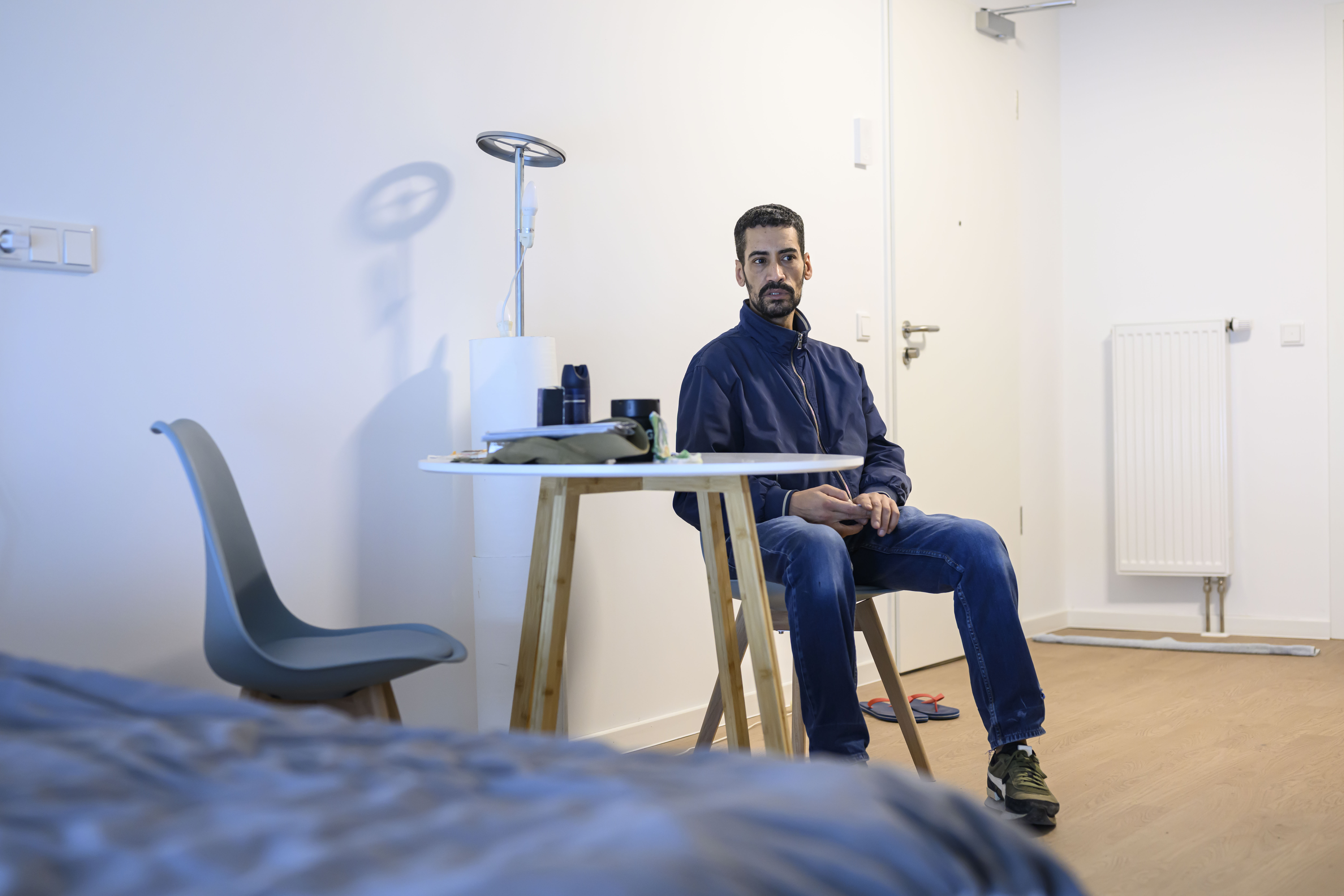 Er winkt rein in sein Appartement. Alles war an seinem Einzugstag schon aufgebaut: eine komplette Küche, Waschmaschine, Schrank, Bett, ein Tisch, zwei Stühle. Sauber und hell. Er wirkt immer noch erstaunt über die „große Hilfe“. Mejri hat eines der großen Zimmer bekommen, an die 24 Quadratmeter. „Wir gehen davon aus, dass er bald wieder arbeitet. Und dann braucht er mehr Raum für sich“, erklärt Monika de Bruijn, die Leiterin des Übergangswohnheims. Dann steigt auch Mejris Anteil an der Miete – auf bis zu 800 Euro.